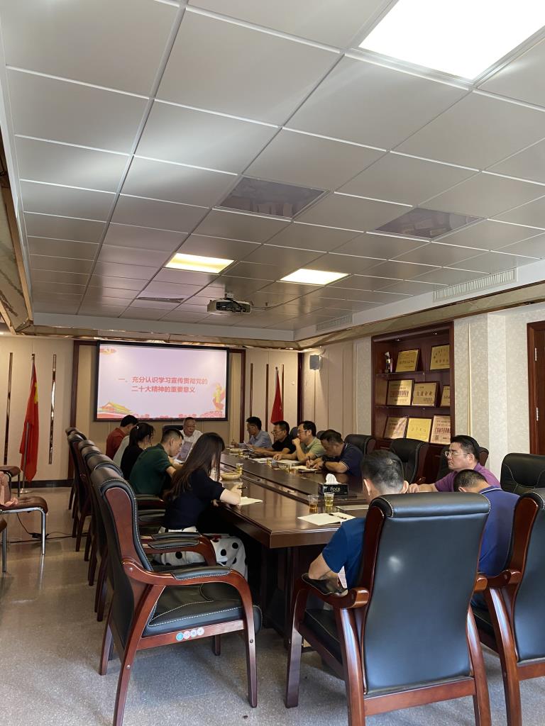會議指出,公司要把學(xué)習(xí)宣傳貫徹黨的二十大精神作為當(dāng)前和今后一個時期的首要政治任務(wù),與習(xí)近平新時代中國特色社會主義思想結(jié)合起來,與貫徹落實習(xí)近平總書記對廣東系列重要講話和重要指示精神結(jié)合起來,與落實省第十三次黨代會精神結(jié)合起來。各部門要認(rèn)真做好學(xué)習(xí)培訓(xùn)和宣傳教育各項工作,在公司上下興起學(xué)習(xí)宣傳貫徹?zé)岢?。要以高度的政治?zé)任感和使命感,牢牢把握正確方向?qū)?,切實把思想和行動統(tǒng)一到黨的二十大部署要求上來。要做到突出國企特色,把學(xué)習(xí)宣傳貫徹二十大精神作為首要政治任務(wù)、周密安排推進(jìn),扎實做好二十大精神學(xué)習(xí)宣傳工作、促進(jìn)落地生根,真正用黨的二十大精神指引企業(yè)黨的建設(shè)和改革發(fā)展、堅持貫通融合,充分發(fā)揮領(lǐng)導(dǎo)干部引領(lǐng)帶動作用。