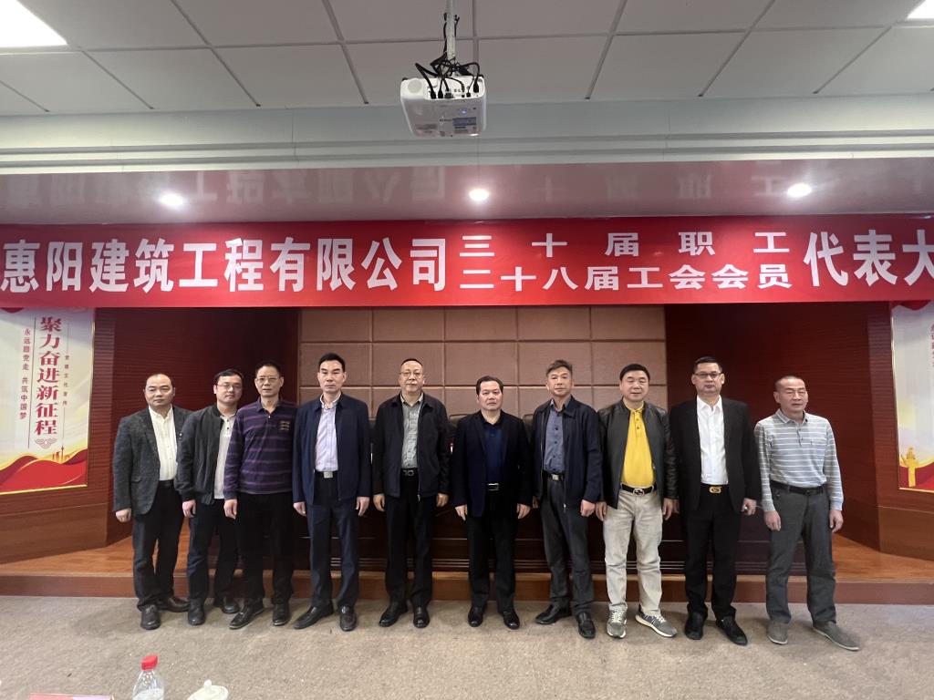 惠陽(yáng)建筑工程有限公司2023年度第三十屆職工暨第二十八屆工會(huì)會(huì)員代表第一次大會(huì)于2023年3月31日上午隆重召開,本次會(huì)議嘉賓有:惠陽(yáng)區(qū)國(guó)資事務(wù)中心黨委書記、主任嚴(yán)浩明同志;惠陽(yáng)區(qū)總工會(huì)黨組成員、副主席陳光同志;惠陽(yáng)區(qū)總工會(huì)黨支部副書記、機(jī)關(guān)經(jīng)委主任鐘耀輝同志;惠陽(yáng)區(qū)城投集團(tuán)黨委副書記、總經(jīng)理劉奕明同志。