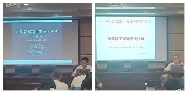 第一分公司陳文軍同志對(duì)市政管網(wǎng)項(xiàng)目安全生產(chǎn)相關(guān)知識(shí)進(jìn)行講解;第二分公司安全經(jīng)理陳漢輝同志宣講了建筑施工現(xiàn)場(chǎng)安全檢查知識(shí)。