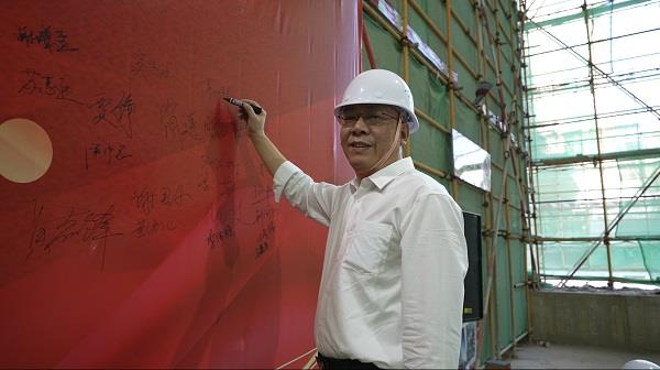 在封頂儀式上,惠州市惠陽區(qū)國資事務中心黨委書記、主任劉世海,惠州市惠陽區(qū)城市建設(shè)投資集團黨委書記、董事長鄭劍偉,以及惠陽建筑工程有限公司總經(jīng)理席旭輝等領(lǐng)導嘉賓齊聚一堂,共同見證這一榮耀時刻。他們在簽到處簽到留念,留下了對項目的美好祝愿。