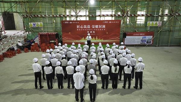 席旭輝總經(jīng)理在致辭中深情回顧了項目自2022年11月開工以來的艱辛歷程。他表示,在730多個日夜的共同奮斗下,惠陽區(qū)科技創(chuàng)新中心項目順利完成了既定建設(shè)任務,今天迎來了封頂這一重要時刻。他感謝所有參建方的辛勤付出和無私奉獻,并表示惠陽建筑工程有限公司將繼續(xù)發(fā)揚團結(jié)拼搏、創(chuàng)新奉獻的精神,確保高質(zhì)量完成后續(xù)施工任務。